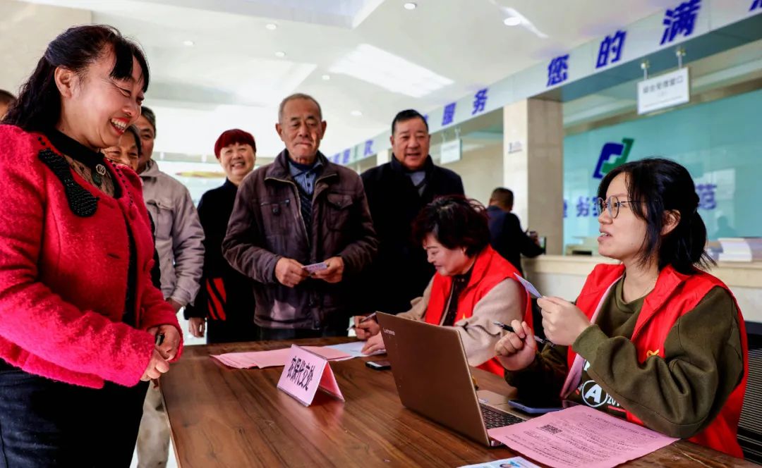 浙江省长兴县吕山乡金村村级代办员为村民登记所需办理事务,由代办员统一去县里为村民代办(2019年11月20日摄)。吕山乡金村在村便民服务中心专门设立代办窗口,为村民提供代办、代缴费服务。新华社记者 徐昱 摄